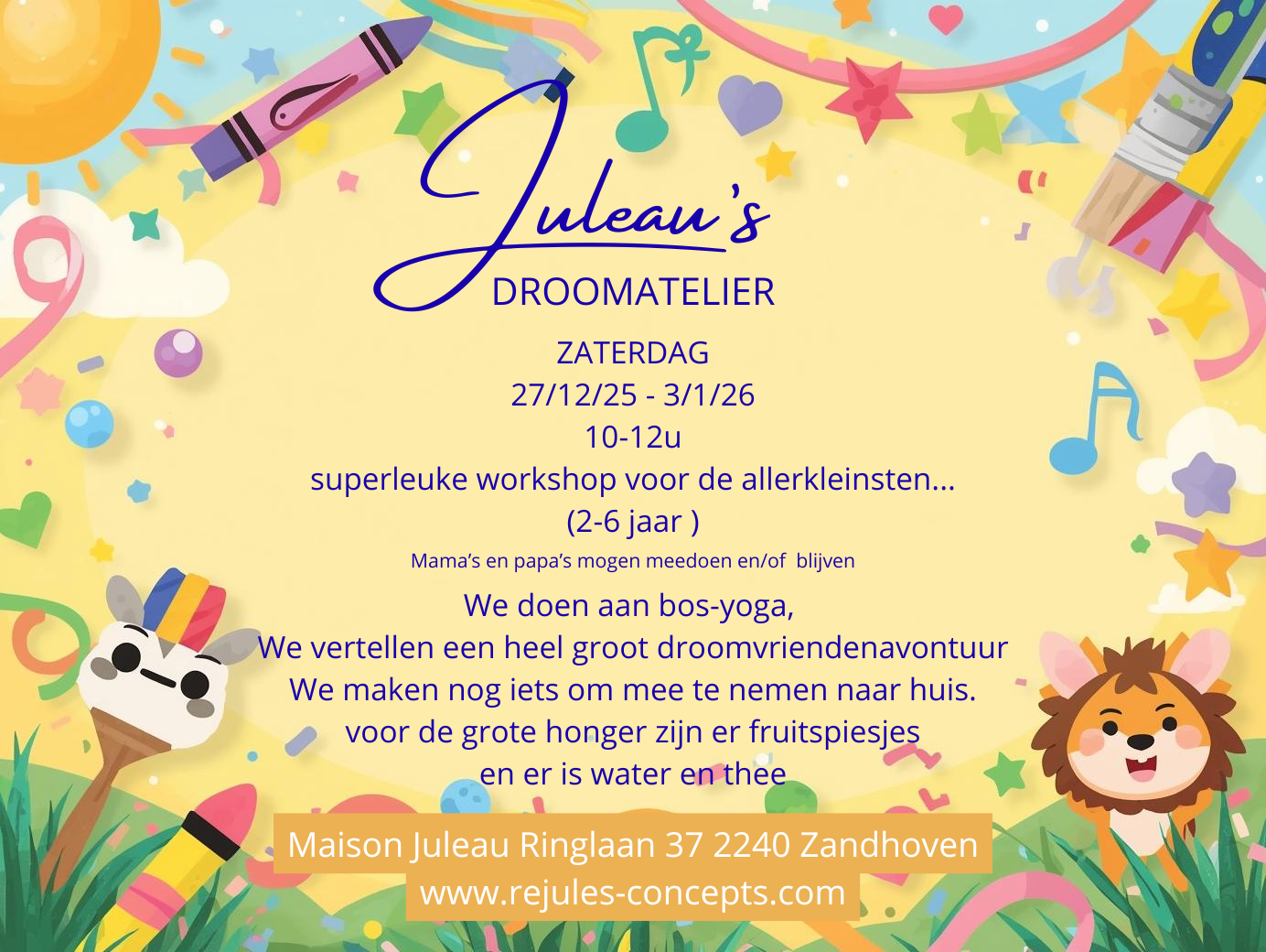 We werken rond de droomvriendjes, bewegen zoals hen, vertellen een heel mooi avontuur, en maken er dan zelf eentje om mee te nemen naar huis.